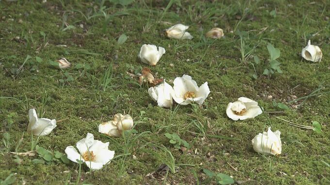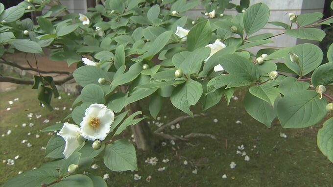 「沙羅双樹の花の色…」平家物語にも記されたナツツバキが見頃 朝に咲いた花が夕方には地面に落ちる“一日花” 三重・津市