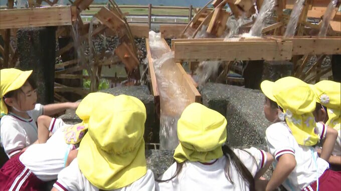 そしておよそ15分後、三連水車に筑後川の水が流れ込みました。