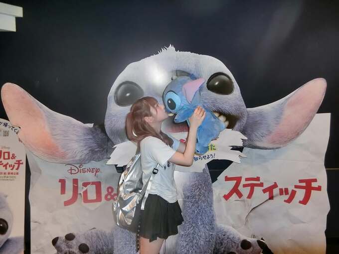 希空さんは、「スティッチ」のイラストが入ったTシャツを着て、大きなスティッチのぬいぐるみを愛おしそうに抱いた写真や、スティッチにドリンクを飲ませるようなしぐさの写真、さらにはスティッチに優しくキスをするショットなど、スティッチとの微笑ましい写真を多数投稿。