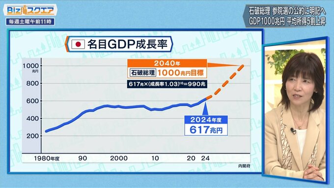「名目GDP1000兆円実現のためには2つ条件がある。【1】賃金がきちんと上がっていく【2】正しい設備投資や正しい投資が進んでいくこと。それにより実質GDP1%成長をやり遂げるということができれば可能な数字」