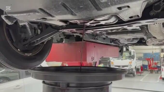 オイル交換の際には、「なんでそんな走ってないのに黒くなるんだろう? 不思議だな」と疑問を投げかけていた伊藤さんでしたが、整備士が「前回よりはちょっと、やっぱり透明感ありますね」と応答すると「本当だ、茶色い」と驚がく。「前は真っ黒だった」と以前の点検を思い出していました。