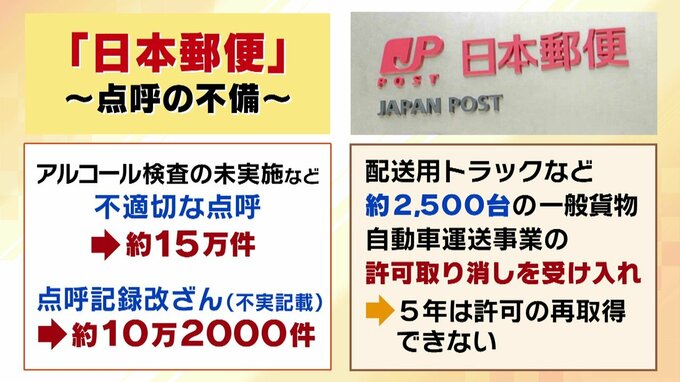 日本郵便では、アルコール検査の未実施など不適切な点呼が約15万件あり、点呼記録の改ざん(不実記載)が約10万2000件ありました。配送用のトラックなど2500台の一般貨物自動車運送事業の許可取り消しを受け入れて、許可の再取得は5年できないという状況です。記者会見では何が語られ、私達の生活にどんな影響があるのでしょうか。物流ジャーナリストの坂田良平さんに詳しく聞いていきます。