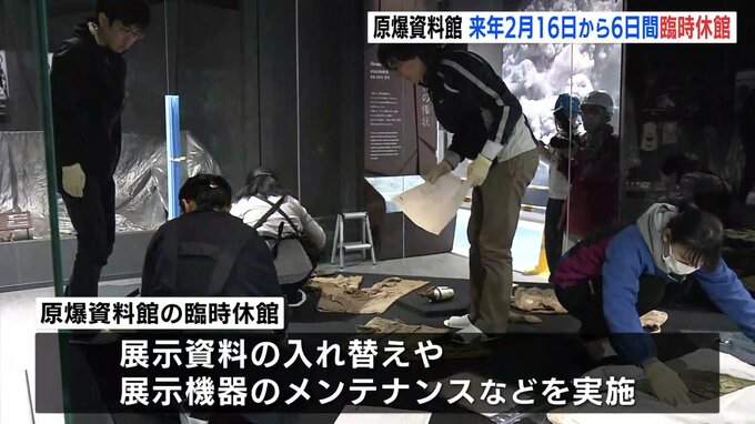 原爆資料館は展示資料の入れ替えや館内清掃などのため、来年2月16日から6日間、臨時休館すると発表しました。
