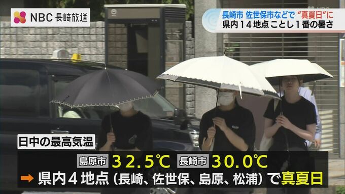 日中の最高気温は島原市で32.5度、長崎市で30度まで上昇。4つの地点で「真夏日」となるなど県内14地点で今シーズン最高気温となりました。