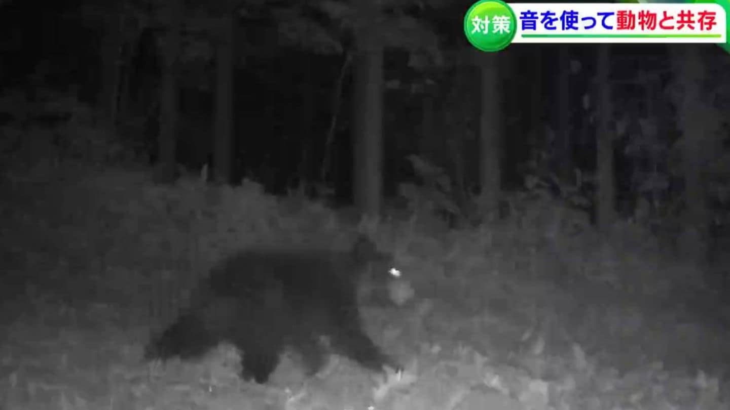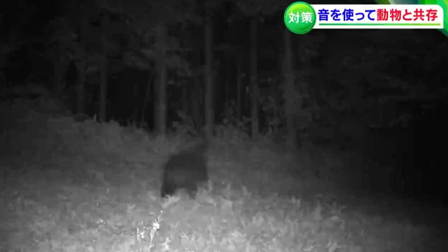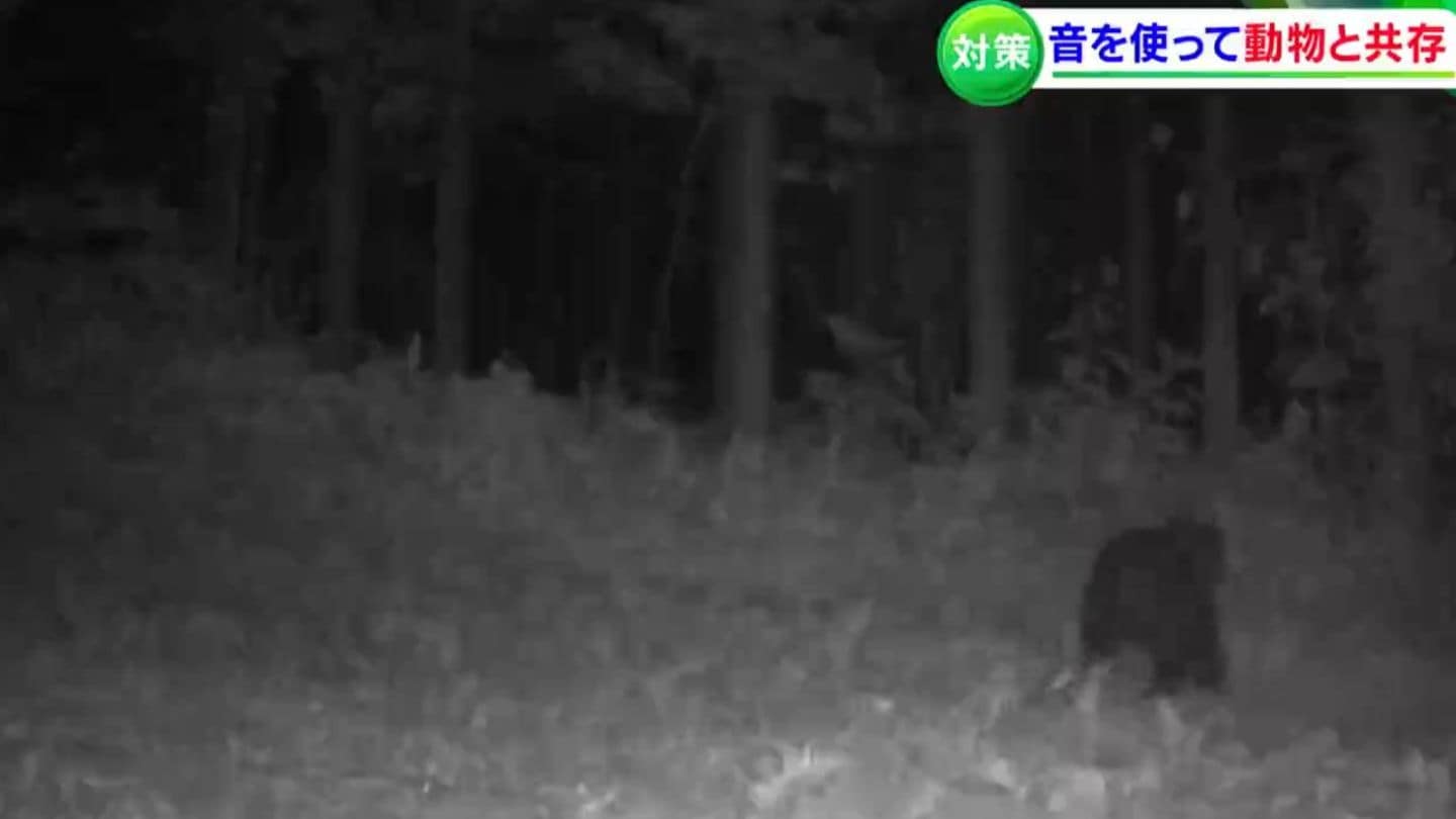 センサーが、動物の動きを感知し音を出す「くまドン」です。山梨県の企業が開発したもので、辻教授がその効果を確かめています。