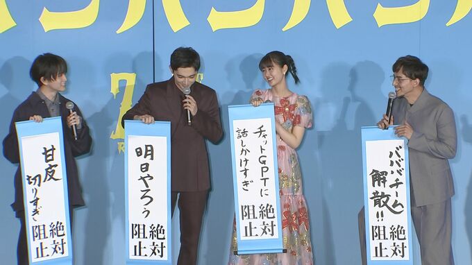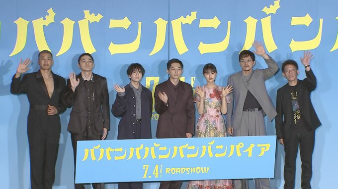 俳優の吉沢亮さん、板垣李光人さん、原菜乃華さん、満島真之介さん、眞栄田郷敦さんが映画「ババンババンバンバンパイア」完成披露試写会に登壇しました。