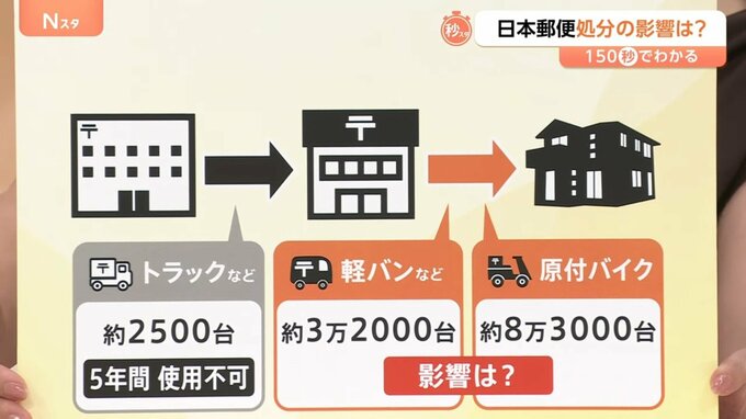 郵便局からさらに地元の郵便局へと運ぶトラック約2500台が、5年間新たな許可が取れないということで、使用不可になってしまいました。