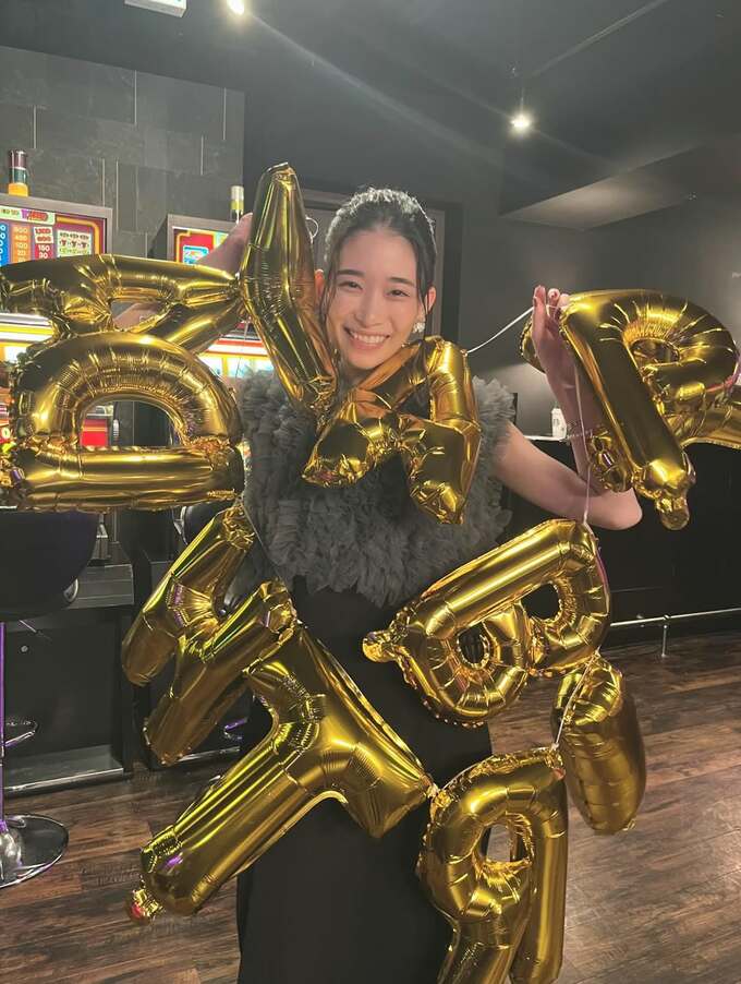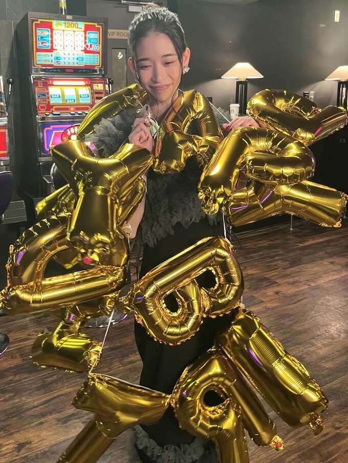 森川さんは、「HAPPY BIRTHDAY」のバルーンを体に巻き付け、にっこり微笑む姿を披露し、「卑屈でわがままで、思い描いていた大人とは違いますがおもしろい人間にはなっていると思います」と、自己分析。