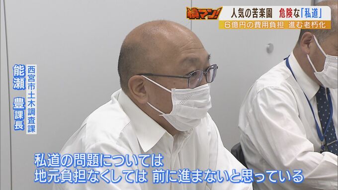 (西宮市 能瀬豊課長)「大丸地区は特別だとおっしゃるかもわからないですけれども、(私道は)西宮市内にもいっぱいあって、これまでにも他の地区で同じように引き取ってくださいと言われてきているんですよ。その時にはやはり同じような対応をさせていただいているんです」