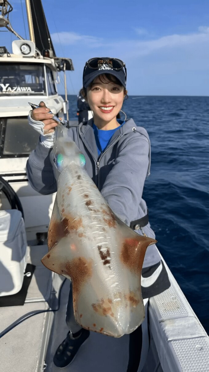 投稿された動画では、海面近くに浮上してきたイカを、手際よく釣り上げ、笑顔を見せる片原恵麻さんの姿が見て取れます。