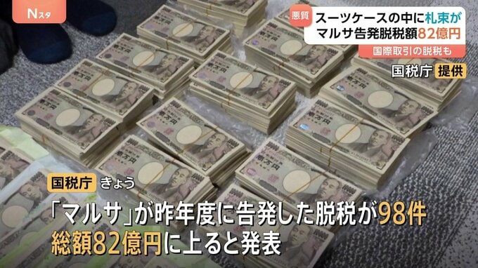 全国の国税局査察部、通称「マルサ」が昨年度に告発した脱税額の総額が、82億円あまりにのぼったことが明らかになりました。「マルサ」が強制調査で見つけた赤いスーツケース。中を開くと、脱税で得られた不正な資…