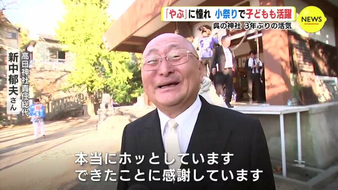 やぶに邪気を払ってもらい、3年ぶりに活気が戻ってきた呉の秋祭りでした。