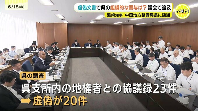 これまでの県の調査で呉支所内にある地権者との協議録23件のうち、虚偽が20件に上ることが明らかになっています。