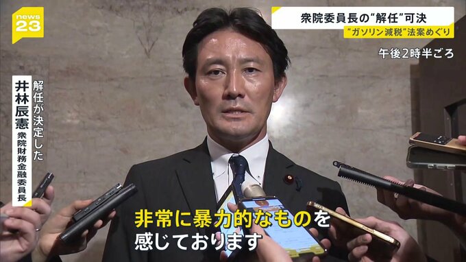 “ガソリン減税”法案をめぐり、法案審議に応じなかったとして野党が提出した自民党の井林衆議院・財務金融委員長に対する解任決議案が可決されました。衆議院で解任決議案が可決されるのは戦後初めてです。解任が…