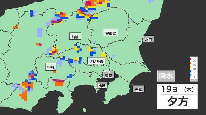【東京首都圏 雷雨に注意】急な強い雨 落雷 突風 ひょうのおそれ ただ危険な暑さは19日(木)まで【19日(木)雨・発雷確率・気温シミュレーション・警報発表の可能性地域は?】東京・神奈川・埼玉・千葉・山梨・群馬・栃木・茨城 南日本放送 2025年6月19日(木) 12:49 国内 天気 降水量のシミュレーション19日(木) 局地的に雨雲が発達し【大雨】が起こりやすい状況です。降水量のシミュレーションは、画像で確認できます。