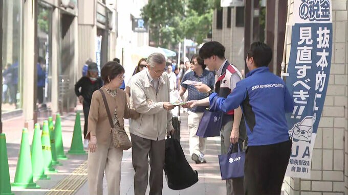 JAF(日本自動車連盟)は、ガソリン税の暫定税率の廃止など自動車税制の見直しを福岡市の街頭で訴えました。「車の税金が高すぎるので安くするための活動をやっています」19日午前、福岡市天神ではJAFの職員たちが…