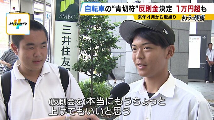 自転車ルールの厳罰化について街で聞きました。ながらスマホ運転については「1万2000円の反則金は妥当で、2万円か3万円でもいい」「自転車に乗りながらスマートフォンを操作している人をよく見かけるので危ない。もっと金を取った方がいい」などと、危険な運転の抑止効果に期待する意見もありました。
