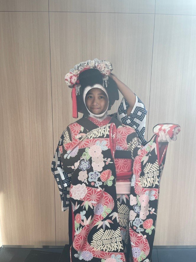 続く投稿で、市川團十郎さんは「お疲れ様」と題したブログで、女形の顔ハメ看板に、顔をはめた、市川新之助さんの写真をアップ。
