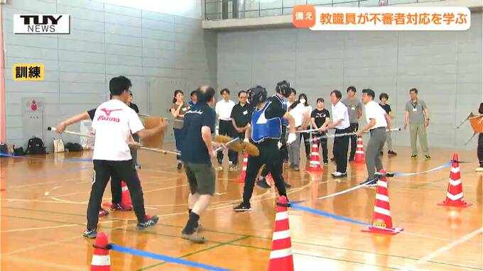 こうした学校での不測の事態に備えてもらおうと、県警察本部と県が教職員を対象にした不審者に対応する研修会を開きました。