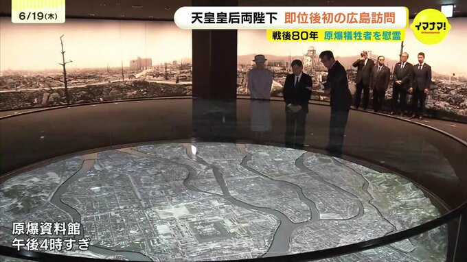天皇皇后両陛下は19日、戦後80年の原爆犠牲者の慰霊のため、広島を訪問されています。平和公園で、原爆慰霊碑に花を供えられました。