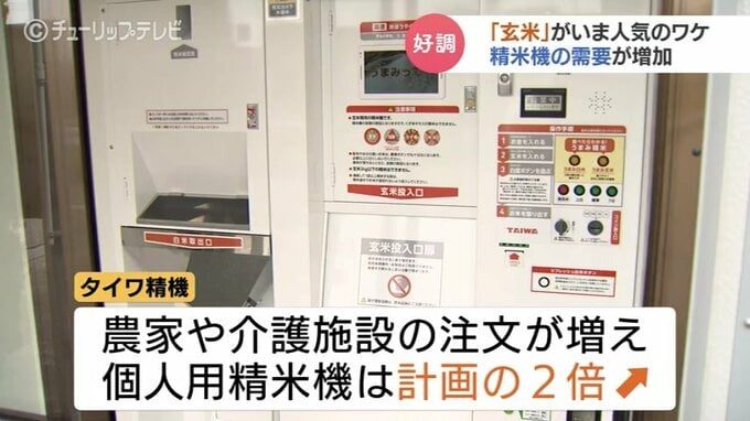 この会社では個人用と業務用の精米機などを製造していますが、農家や介護施設の注文が増え個人用については計画の2倍に伸びているということです。