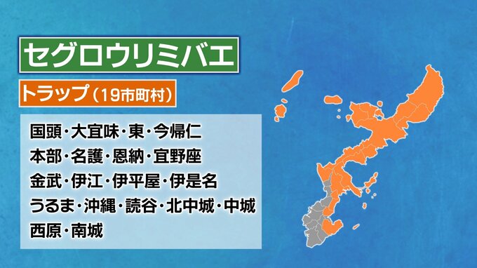 セグロウリミバエの飛来が確認されたのは、県内19の市町村。今月、伊江島と伊平屋村で新たに確認され、北部では12市町村すべてで飛来が確認されたことになりました。