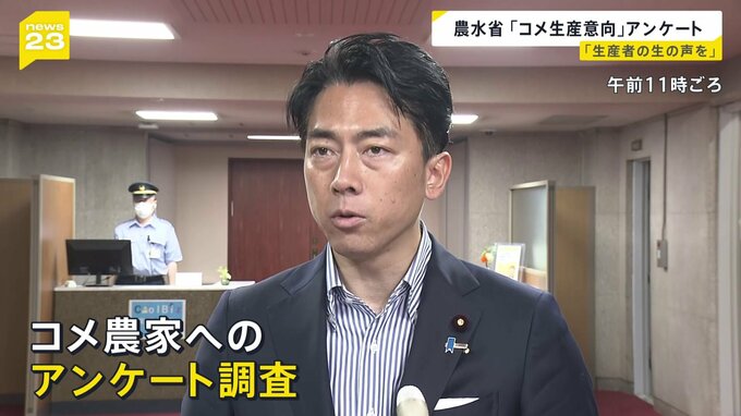 小泉農水大臣はきょう、コメ農家へのアンケート調査を実施すると表明しました。きょうから7月末まで行う見通しで、すべてのコメ農家を対象に、現在の経営状況や今後のコメの生産意向などを聞くとしています。小泉…