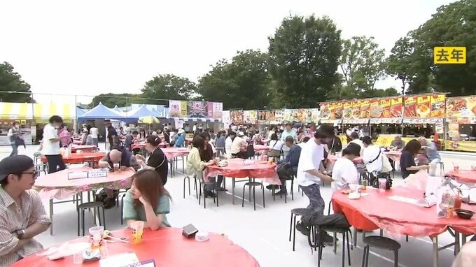 毎年6月に開催しているこのイベント。季節外れの暑さで、去年にはなかったテントの屋根がテーブルの上に設置されていました。
