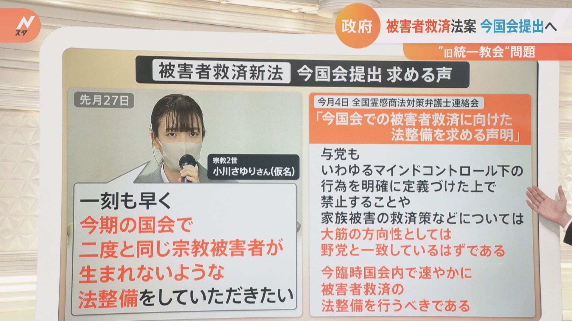 あとはニュースでも連日、お伝えしていますが、宗教2世の小川さゆりさん(仮名)は「一刻も早く、今期の国会で二度と同じ宗教被害者が生まれないような法整備をしていただきたい」としています。