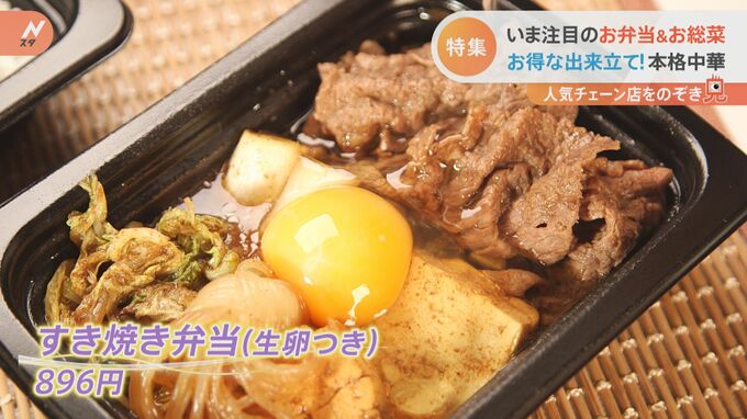 カナダ産のアンガスビーフを使い、2種類の醤油と熟成黒みりんの特製タレで仕立てていて、コクと甘味がクセになる一品。これだけ本格的なすき焼きが896円(生卵つき)で食べられるんです。