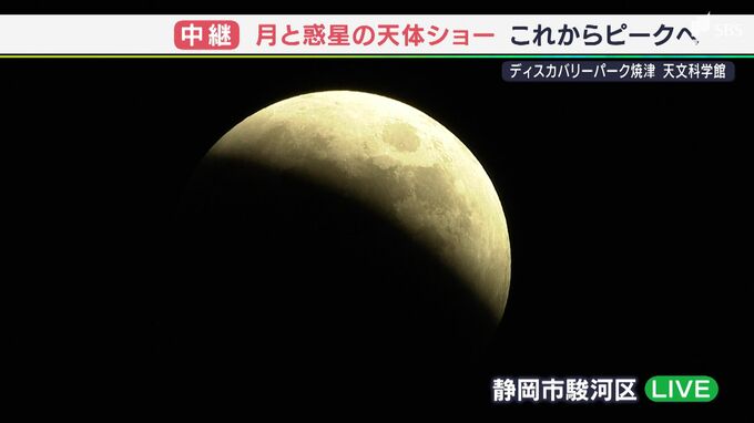 11月8日、全国各地が盛り上がった“皆既月食+天王星食”。静岡県内でも各地で、実に442年ぶりの貴重な天体ショーを目撃することができました。SBSテレビでは、8日午後6時15分から放送の『LIVEしずおか』の放送内から放送後まで、皆既月食の様子を撮影。徐々に欠けていき、赤く見える神秘的な月をご覧ください。