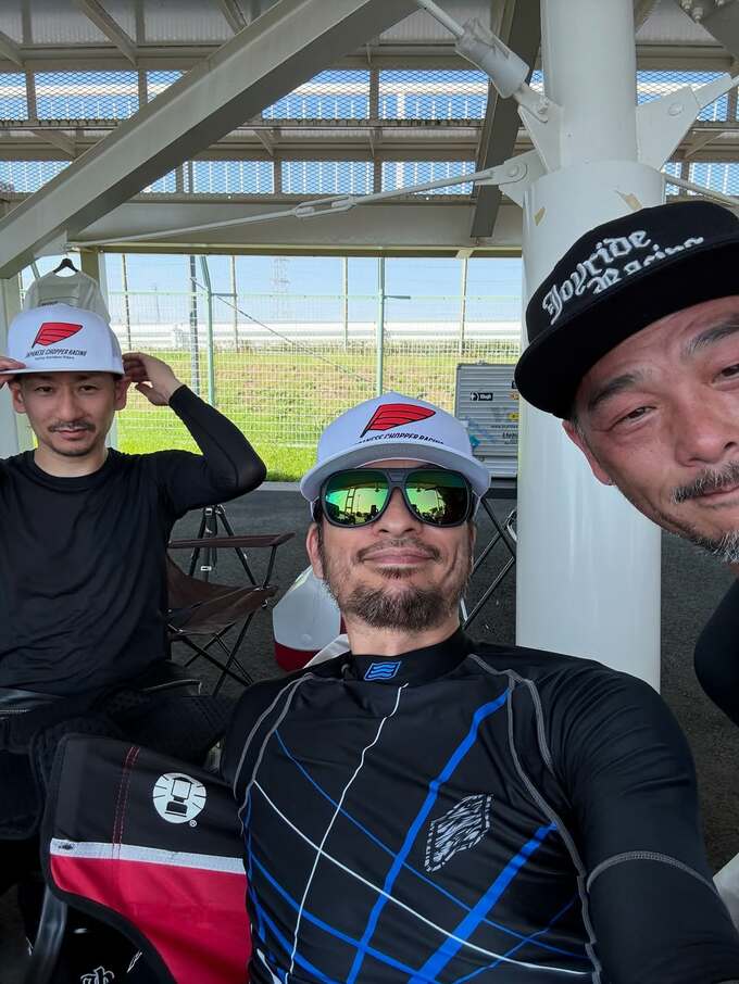 長瀬さんは「体感気温41℃」と一言だけテキスト。猛暑のようですが、サーキット内のパドックと思われる日陰の場所で、しっかりと帽子をかぶり、リラックスした様子でチームメイトと笑顔を見せています。