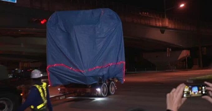まだ、ブルーシートに覆われていました。金沢港からトレインパークまでの大移動を見守ろうと、14日の未明、多くのファンが詰めかけました。