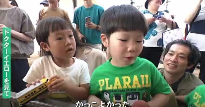 訪れた人たちは、高さ4メートルほどの車体のそばまで近づき、早速、記念写真を撮ったり、普段は見られない車体の下をのぞき込んだりして歓声を上げていました。