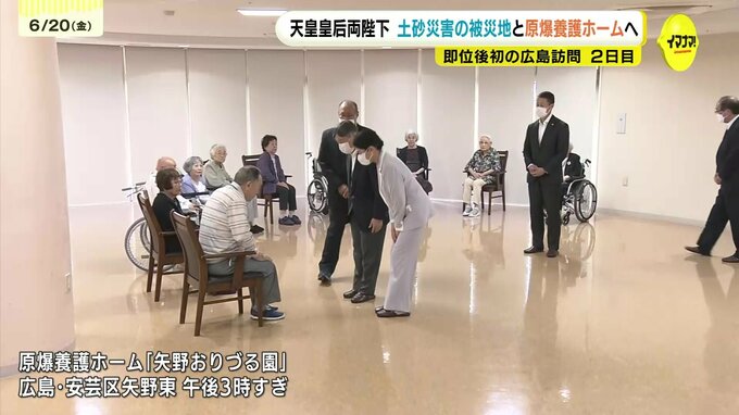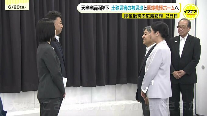 即位後初の広島訪問、2日目の動きについてお伝えします。天皇皇后両陛下は20日、2014年に発生した広島土砂災害の被災地と原爆養護ホームを訪問されました。