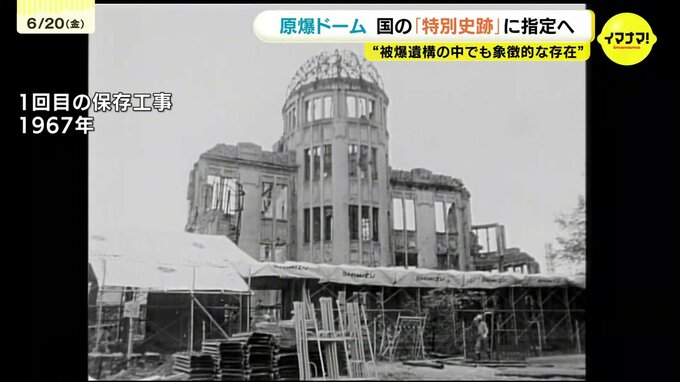 平和のシンボル、広島市の原爆ドームが、国の「特別史跡」に指定されることになりました。国の文化審議会は、広島市にある原爆ドームを国の「特別史跡」に指定するよう文部科学大臣に答申しました。原爆ドームは、…