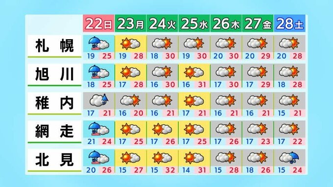北海道付近を21日夜から22日にかけて前線が通過し、暖かく湿った空気が流入するため、大気の状態が不安定となるでしょう。