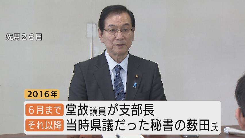 支部長時代の党費肩代わりの有無については「ずいぶん時間の経っている話なので、何とも言えない」とし、当時の党費の流れを調べ、支部に報告するとしていました。