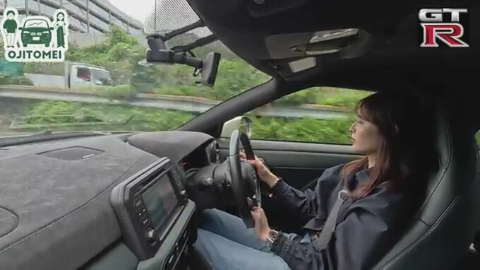 「割と本当になんかずっしりしてる感じ」と古畑さんは運転したときの第一印象を話します。GT-Rならではの力強い走りと安定感は、乗り手に強い印象を与えるようです。