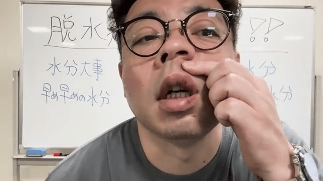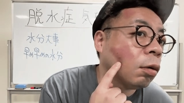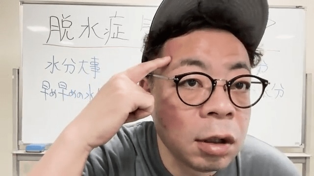 「倒れる時の記憶がないので、全く何がどうなっているのか分からない状況で、気づいたら倒れているということになる」と脱水症の怖さを強調。「かなり危険なので、皆さんちょっと水分補給を…お前に言われんの分かってるわっていうことなんですが、思っているより大事です」と視聴者に呼びかけています。