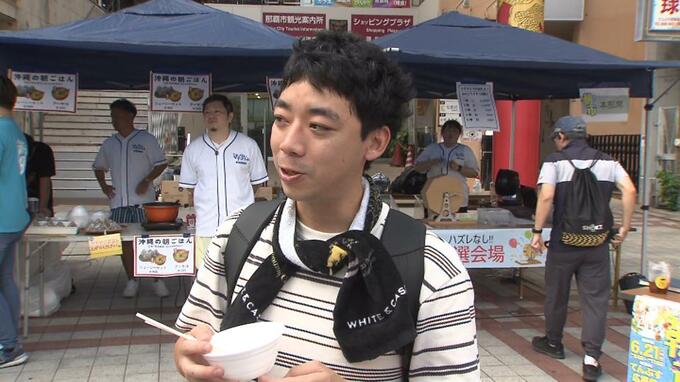 那覇市のてんぶす前広場には、沖縄天ぷらやおにぎりなど朝食むけの商品を扱う飲食店を中心に12の業者が出店し、午前8時の開店直後から地元の人や国内外の観光客で賑わいました。