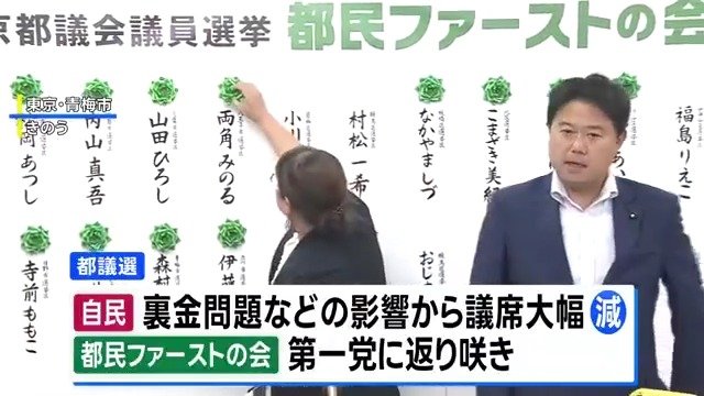 【開票結果・続報】都議選 都民ファーストの会が第一党に返り咲き 自民党は過去最低の議席数に
