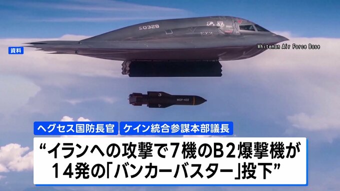 アメリカによるイランの核施設への攻撃で、国防総省は大型の地中貫通弾「バンカーバスター」を初めて実戦で使用したと明らかにしました。アメリカ ヘグセス国防長官「イランの核開発の野望は完全に打ち砕かれた」…