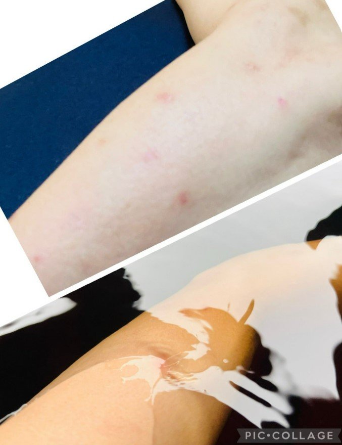 続けて「こんにちは 今日も暑いですね」「この暑さで 肌荒れ&痒みが なかなか治らず 汗をかくと 肌がヒリヒリ 痛痒くなります」と、綴りました。