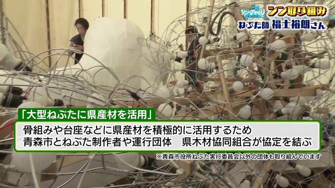 今年、青森県産木材をねぶたに利用する協定が、青森市とねぶた師や運行団体、県木材協同組合の間で結ばれ、『我生会』では県産の杉を使う“シンな取り組み”を始めました。