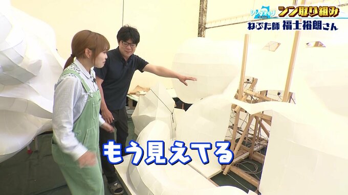 木材や針金で造られた『骨組み』と呼ばれるねぶたの土台部分に、新たな取り組みが施されているとのことですが、実土里さんはひと目見ただけではわからない様子。福士さんが教えてくれました。