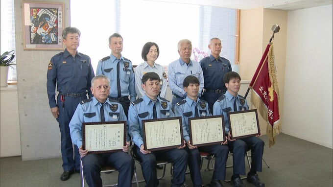 福岡県北九州市の工場で、一時心肺停止となった男性を救助したとして4人の警備員に消防署が感謝状を贈りました。男性は一命をとりとめ職場復帰を果たしたということです。福岡県北九州市の戸畑消防署から感謝状を…