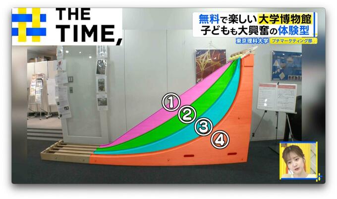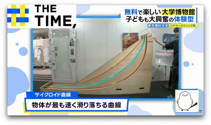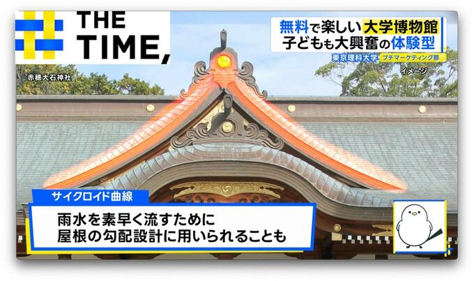 結果は、中ぐらいのカーブの坂のボールがトップでゴール。実はこれ「サイクロイド曲線」という“物体が最も速く滑り落ちる曲線”を表したもので、実際に神社の屋根の勾配などに使用され雨水が速く流れ落ちるのだといいます。