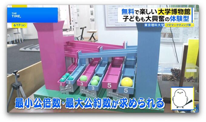 他にも大きさの違うボールを使って最小公倍数、最大公約数が求められる装置など、数学の世界を楽しめる展示が100点以上。