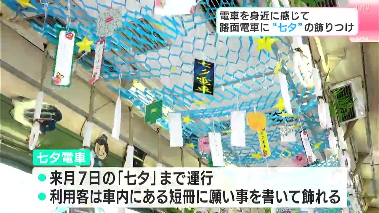 7月7日の"七夕"を前に、高知市の園児たちが、路面電車に七夕の飾りつけを行いました。どんな願い事を書いたのでしょうか。